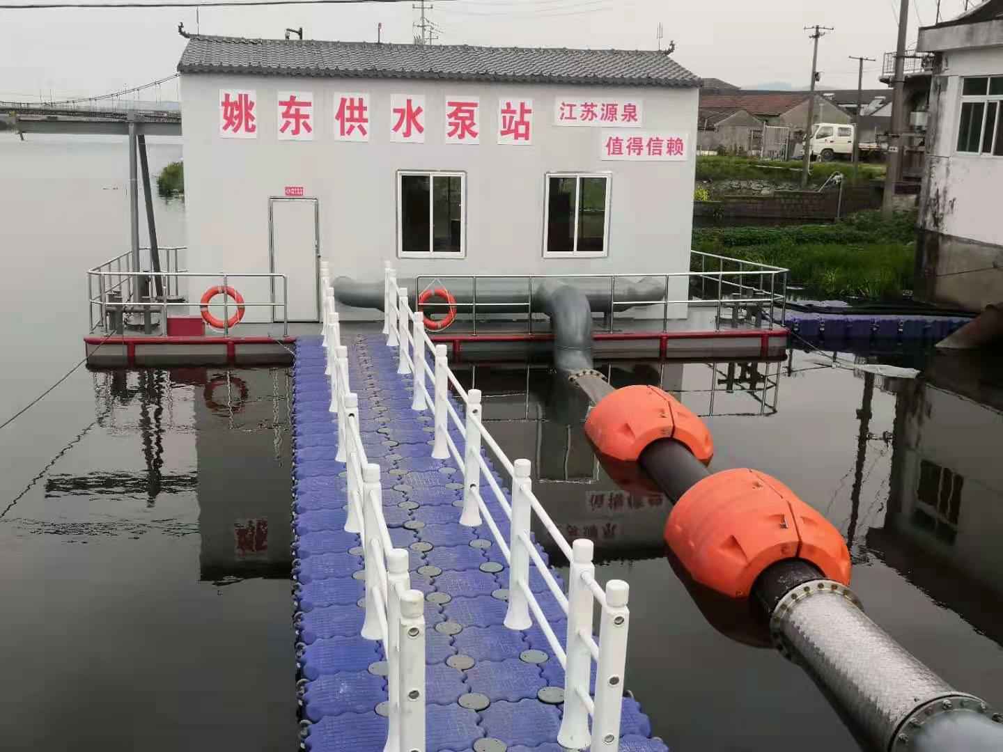- 茌平县东邢水厂项目取水浮船泵站正在安装中 2022-06-10
